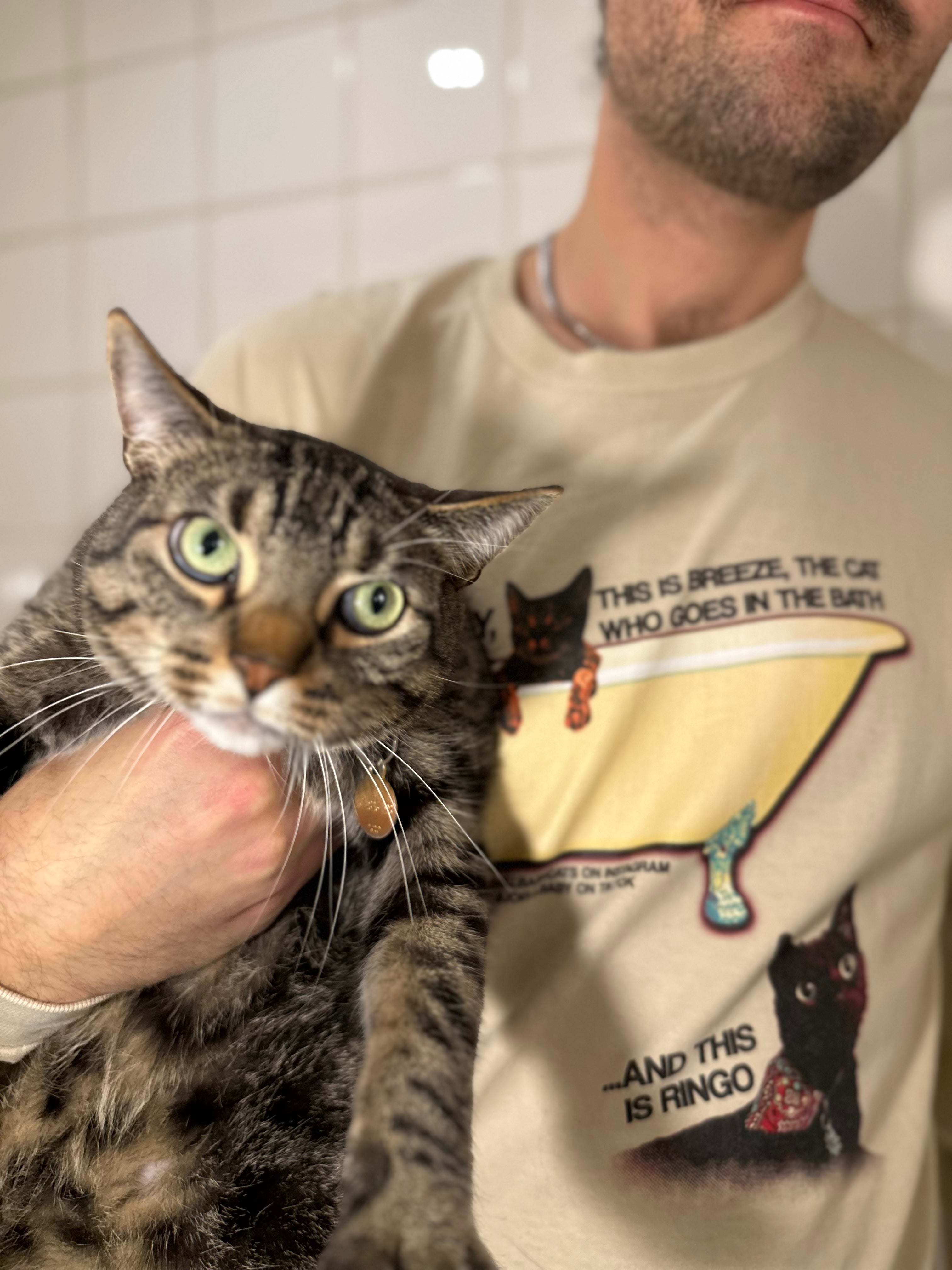 It's Breeze––the kitty who loves the bath––and his best bud Ringo. These two get up to all kinds of mischief around the house and now you can too (in this shirt). Grab your favourite pair of goggles and take this tee tub-side.